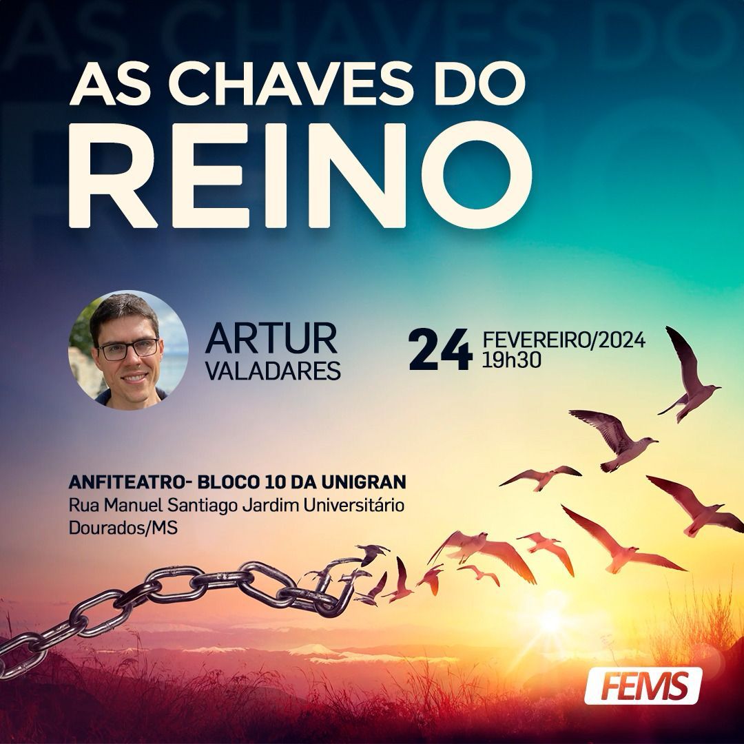 A Federação Espírita de Mato Grosso do Sul promoverá em Dourados a palestra de Artur Valadares, em 24/02, no anfiteatro - Bloco 10 da Unigran. Todos estão convidados, a entrada é gratuita e sem necessidade de realizar inscrição.