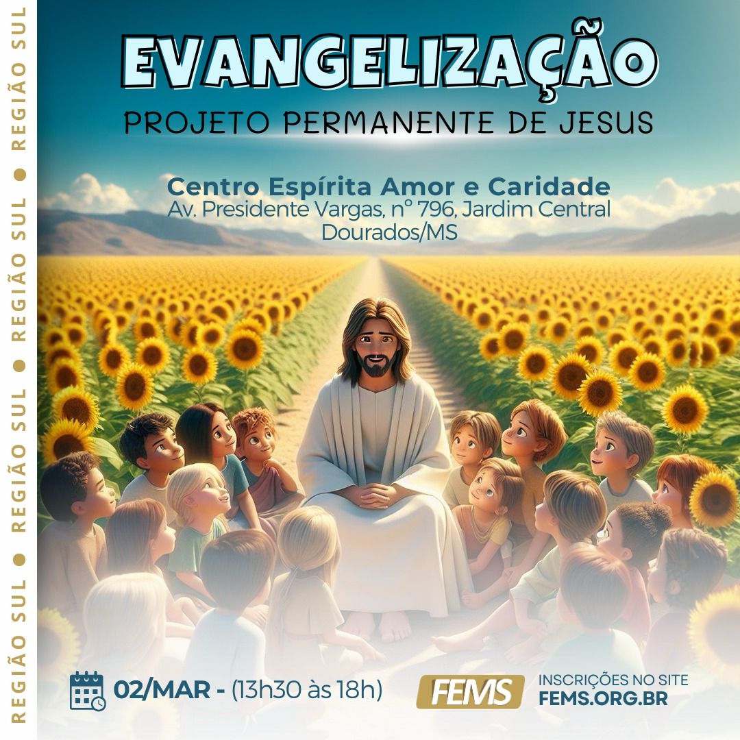 ➡ A Formação será presencial, em Dourados, no dia 02 de março, das 13h30 às 18h e se destina ao trabalhadores espíritas da Região Sul do estado.