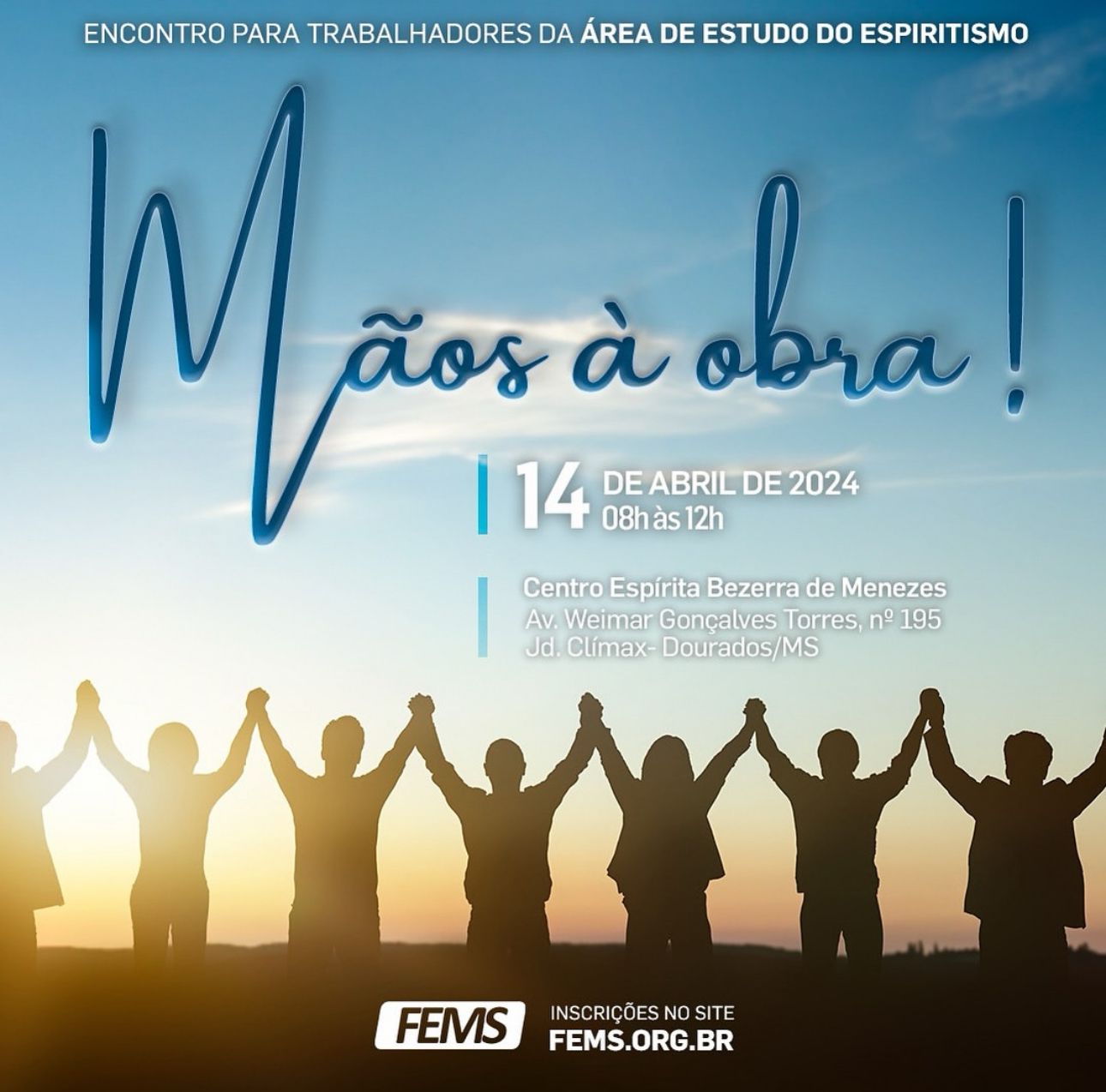➡ O evento será presencial, em Dourados, no dia 14 de abril, das 08h às 12h e se destina ao trabalhadores espíritas da Regional 06 do Estado, sendo eles: