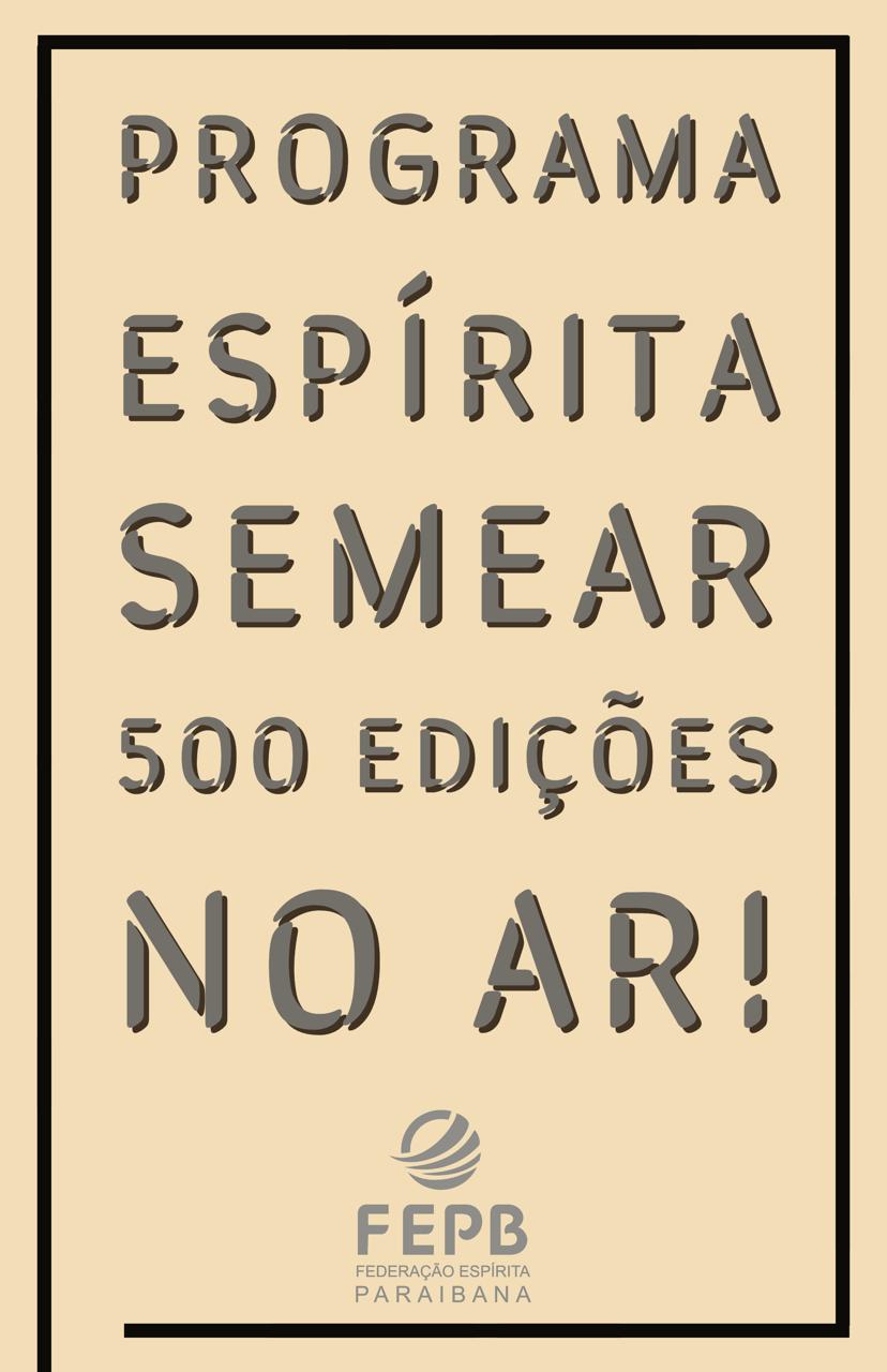 O Programa Espírita Semear, produção da Federação Espírita Paraibana, alcança a marca de 500 edições. Já são 10 anos, a cada semana, sempre com edições inéditas.