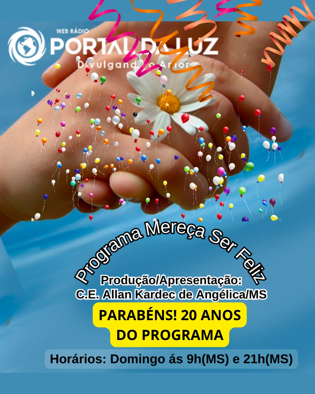 Com o objetivo de transmitir mensagens de paz, esperança e amor ao coração dos radiouvintes do município de Angélica, interior do Mato Grosso do Sul, o Programa Mereça Ser Feliz completa neste mês de Novembro de 2025, vinte anos que está no ar ininterruptamente.