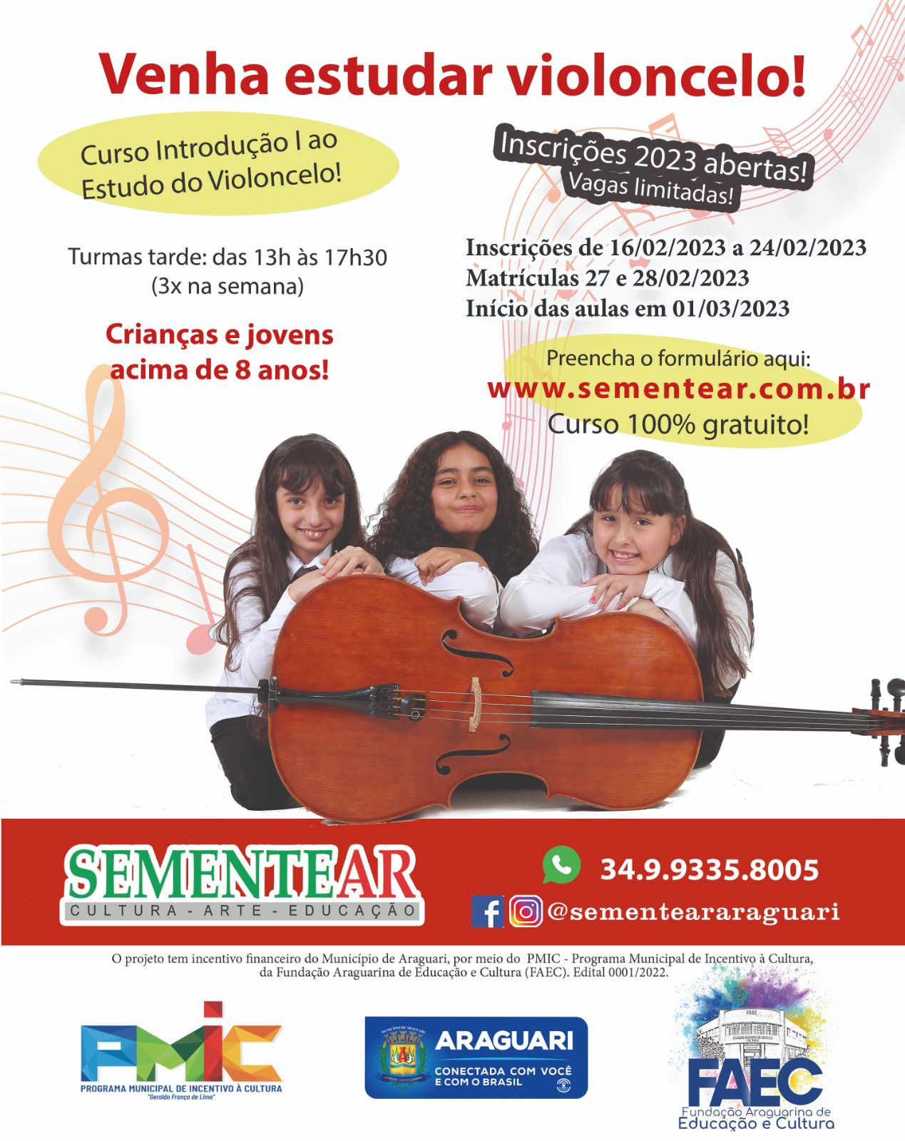 As inscrições deverão ser feitas pelo site www.sementear.com.br - a equipe entrará em contato. Divulgue, apoie!