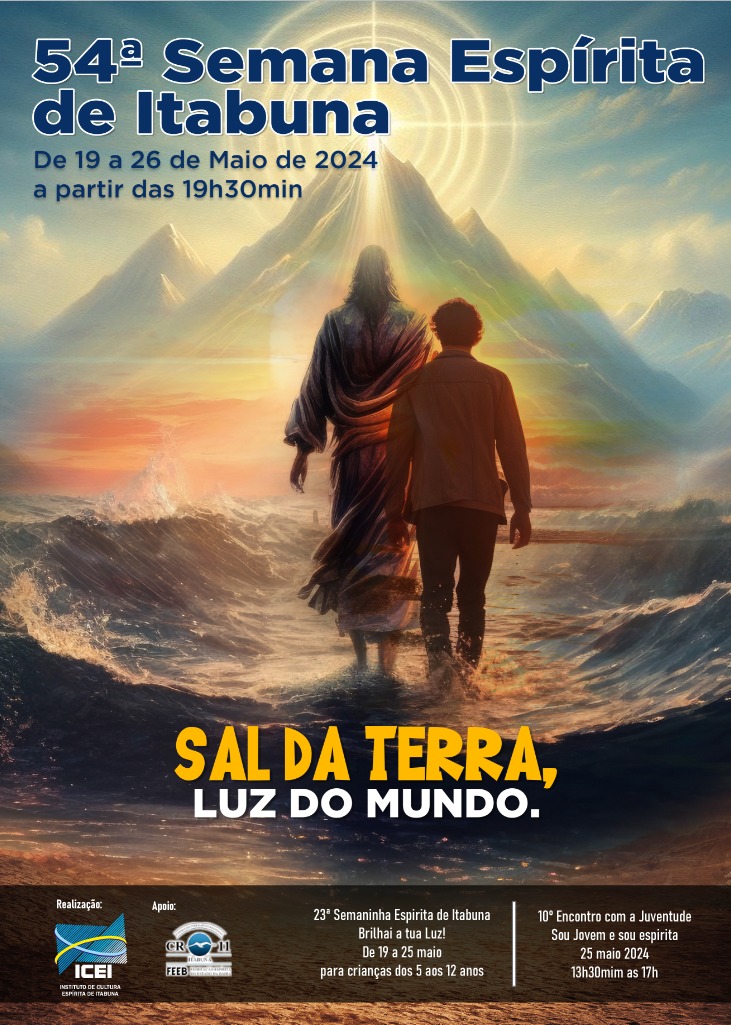 “Sal da Terra, Luz do Mundo” é o tema central da 54ª Semana Espírita de Itabuna que o ICEI - Instituto de Cultura Espírita de Itabuna, realiza de 19 a 26 de maio de 2024, na sua sede, localizada a Rua Allan Kardec, 101, Jardim Italamar (em frente ao colégio CIOMF). O evento é aberto ao público e conta com o apoio da Federação Espírita do Estado da Bahia - FEEB e do Conselho Regional Espírita (CR-11).