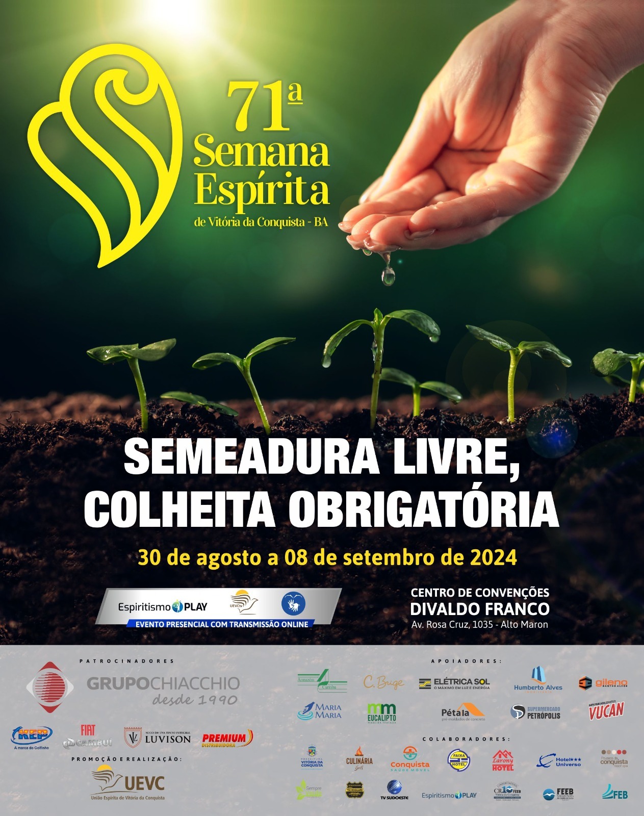 Semana Espírita. Com o tema “Semeadura livre, colheita obrigatória”, o