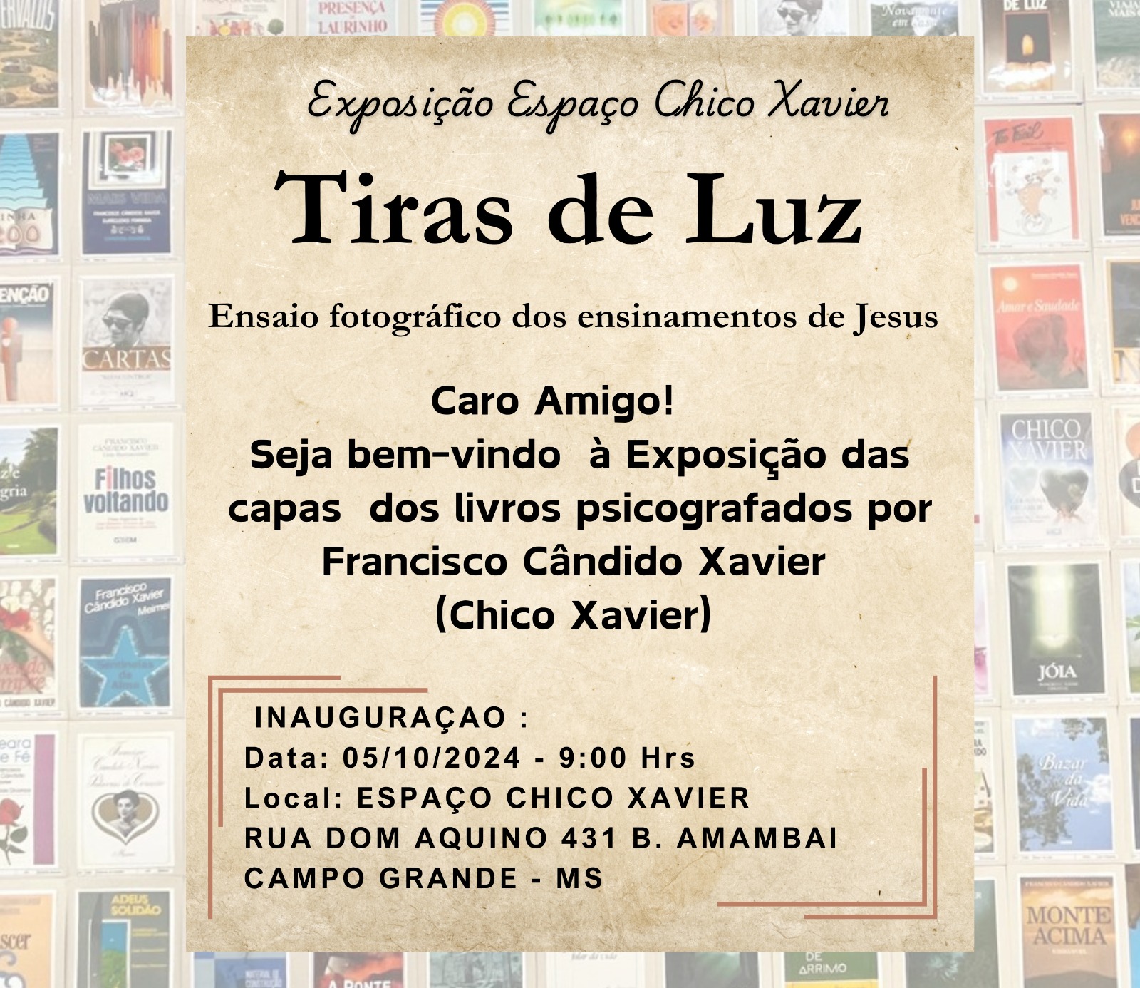 - Onde: Espaço Cultural Chico Xavier,