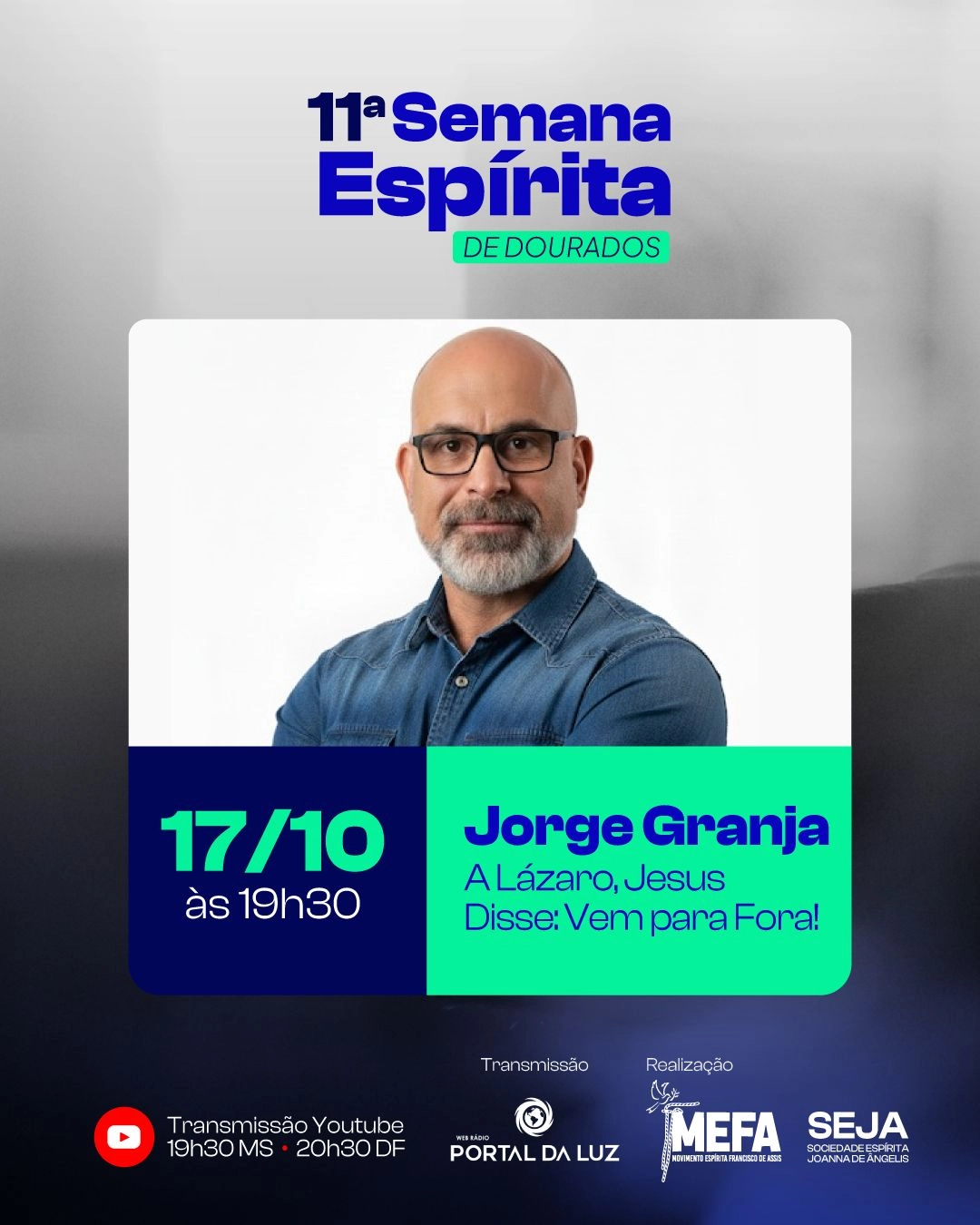 · Boa noite, senhoras e senhores! Sejam todos muito bem-vindos à 11ª Semana Espírita de Dourados, um evento gratuito, presencial e online, promovido pelo Movimento Espírita Francisco de Assis – MEFA e pela Sociedade Espírita Joana de Angelis (SEJA), ambas sediadas aqui em Dourados.